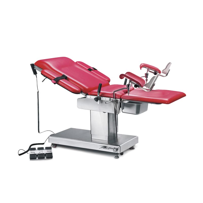 - Specialized Accessories: Standard equipment includes adjustable leg stirrups (Goepel type), shoulder supports, armrests, and a built-in sewage/filth basin for fluid management.
